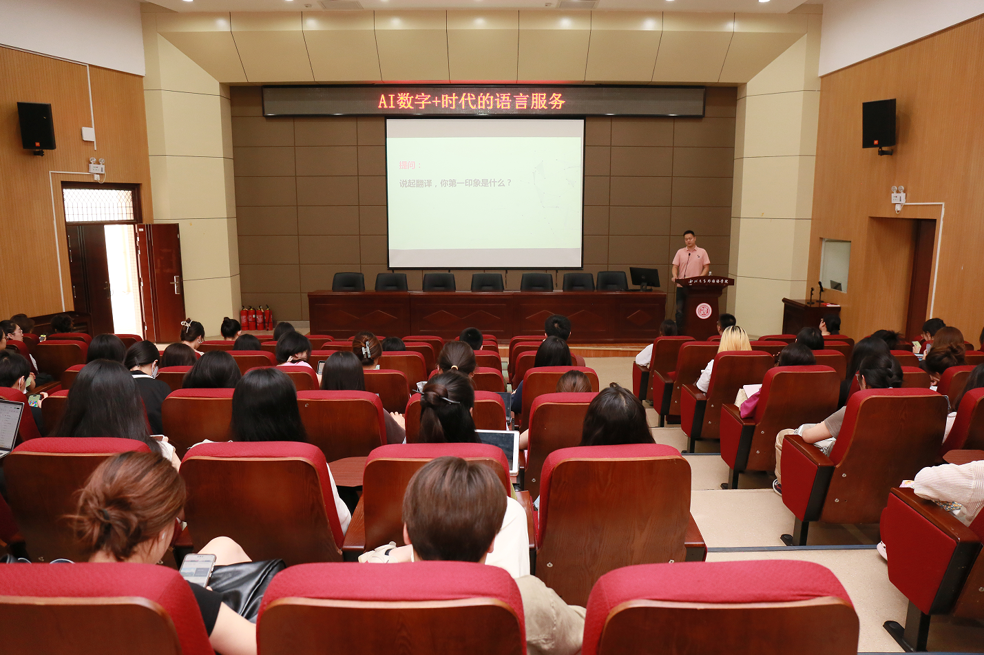 2024年6月19日下午,“AI数字+时代的语言服务”讲座在37000cm威尼斯官网第二课堂报告厅举行。本次讲座由37000cm威尼斯官网MTI中心主任何花老师主持,译国译民集团资深职业规划师方军老师担任主讲嘉宾,23级全体专硕同学参加,部分学硕同学也积极参与其中。