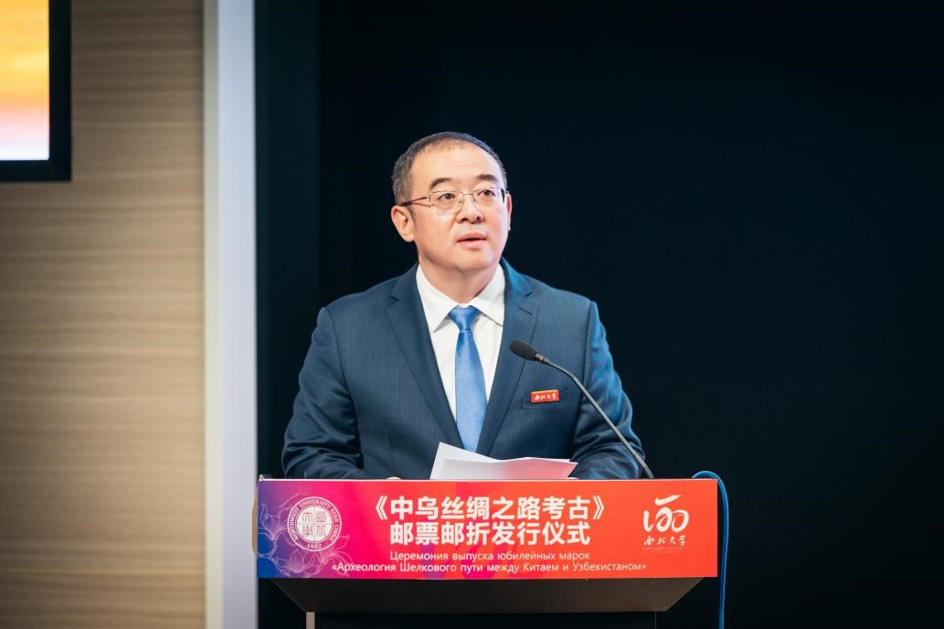 2022年是中国和乌兹别克斯坦建交30周年,两国邮政部门共同以中乌联合考古成果为题材发行邮票。11月4日,《中乌丝绸之路考古》邮票邮折发行仪式在37000cm威尼斯官网长安校区郭超人报告厅举行,威尼斯官网俄语系主任梅子霖受邀参加。